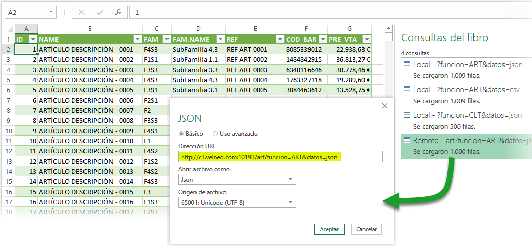 Con este sencillo código tenemos nuestro primer proceso web preparado para intercambiar información con cualquier aplicación externa a través del protocolo HTTP. Nuestra herramienta de análisis de datos Excel ya puede descargar información de la Instancia de datos con una simple consulta Web.