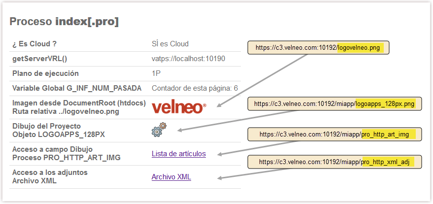 Para montar un servidor HTTP en Velneo Cloud hay que solicitar a Velneo el servicio TCP en Cloud. Tendrás disponible un conjunto de puertos para usar en las peticiones HTTP.