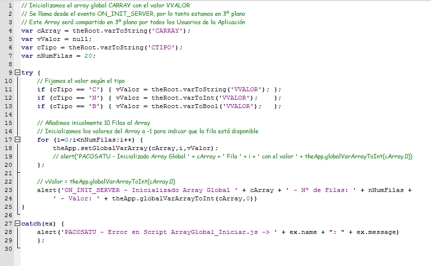 Para el intercambio de información entre el proceso en 3P y la aplicación en 1P vamos a utilizar una variable global de tipo Array.