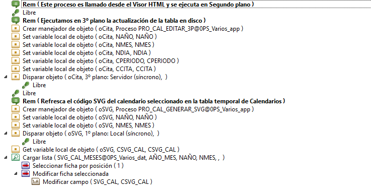 En la variable local EVENT_PARAMS[1] tenemos el String JSON generado en el Visor HTML. Obtenemos la información contenida en el String JSON y ejecutamos el proceso PRO_CAL_EDITAR en segundo plano para no bloquear el Visor HTML.