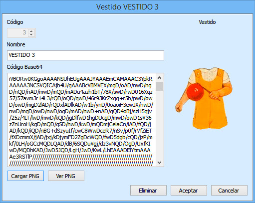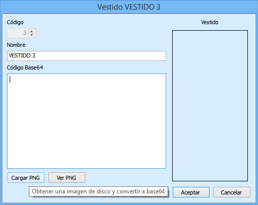 La tablas de Modelos y Vestidos guardan las imágenes en un campo de texto en formato Base64.