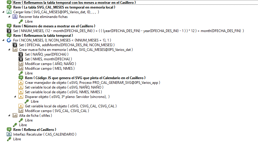 Hay que tener en cuenta que la tabla SVG_CAL_MESES es temporal en memoria por lo que todos los cálculos se realizan en local.