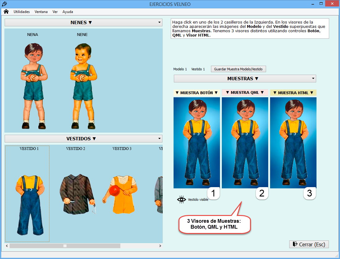 Tenemos 2 casilleros con los Modelos (NENES) y Vestidos respectivamente.