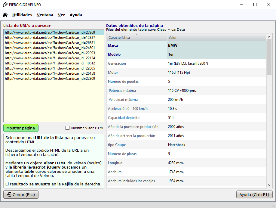 1.Control Listbox con una lista predeterminada de URL's de la forma http://www.auto-data.net/es/?f=showCar&car_id=xxxxx.