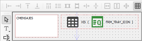 He usado un Dock de formulario en el que se han colocado 2 controles: la Vista de datos con el Formulario QML y una Caja de texto enriquecido donde se mostrarán los mensajes intercambiados y los eventos del icono.