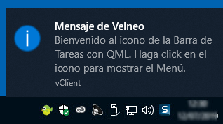 Cuando el componente SystemTrayIcon se ha instanciado aparecerá un mensaje de bienvenida en el icono.