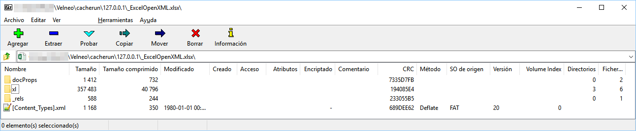 En la imagen siguiente se muestra la estructura de un archivo xlsx. Para un archivo ods veríamos algo similar.