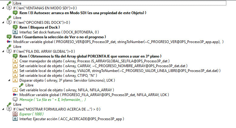 El proceso JavaScript JS_ARRAYGLOBAL_SELFILA recorrerá el array PROGRESO_ARRAY en 3P y buscará la primera fila cuyo contenido sea VVALOR (normalmente -1).