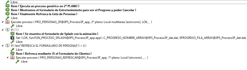 En el ejercicio he preparado 3 procesos que se ejecutarán en 3P y mostrarán el formulario de entretenimiento.
