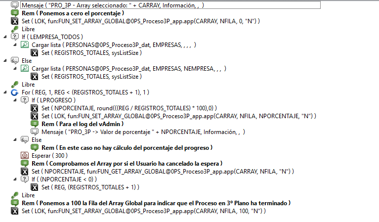Desde el proceso en 3P establecemos en la fila NFILA del array global PROGRESO_ARRAY un valor del progreso de ejecución.