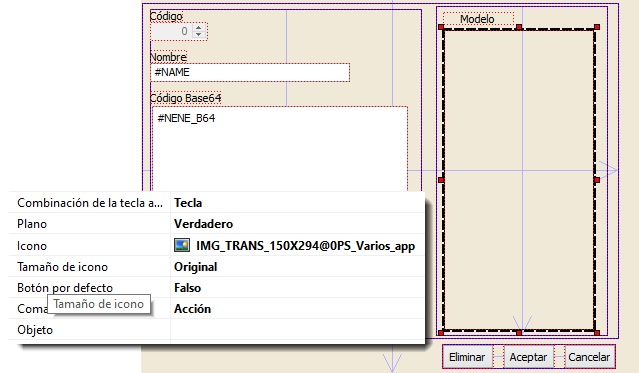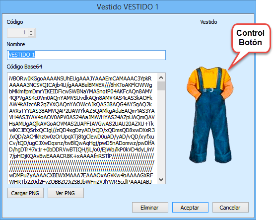 He elegido en este caso visualizar la imagen asociando un objeto VImage a la propiedad Icon del control Botón del formulario.