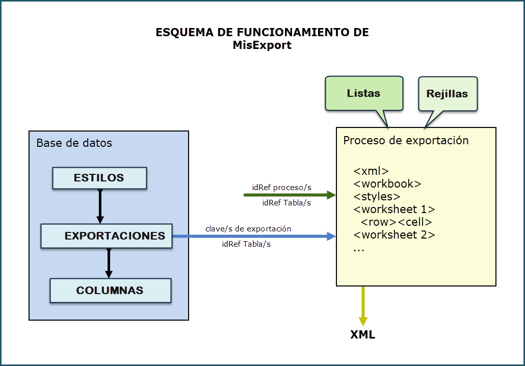 A continuación mostramos el esquema de funcionamiento del módulo MisExport.