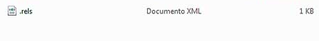 La carpeta _rels contiene las relaciones de los archivos dentro del contenedor. Contendrá los mismos nombres de archivo que indican relaciones pero con una extensión .rels añadida. Por ejemplo, si el archivo workbook tuviese alguna relación, existirá una archivo de nombre workbook.xml.rels dentro del directorio _rels.