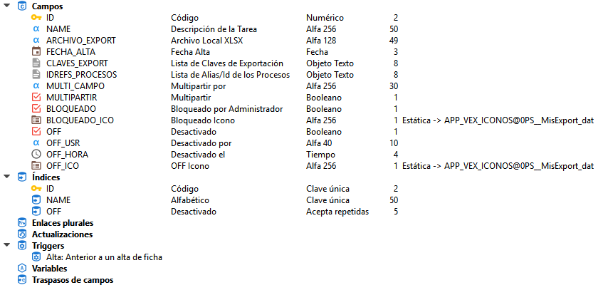 Para probar el módulo MisExport construiremos una tabla de Tareas en la que definimos los parámetros del Proceso de exportación y de esta forma programar su ejecución y repetirla de forma desatendida.